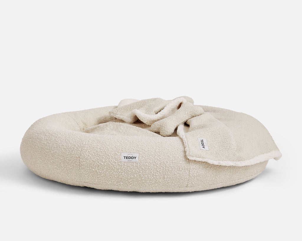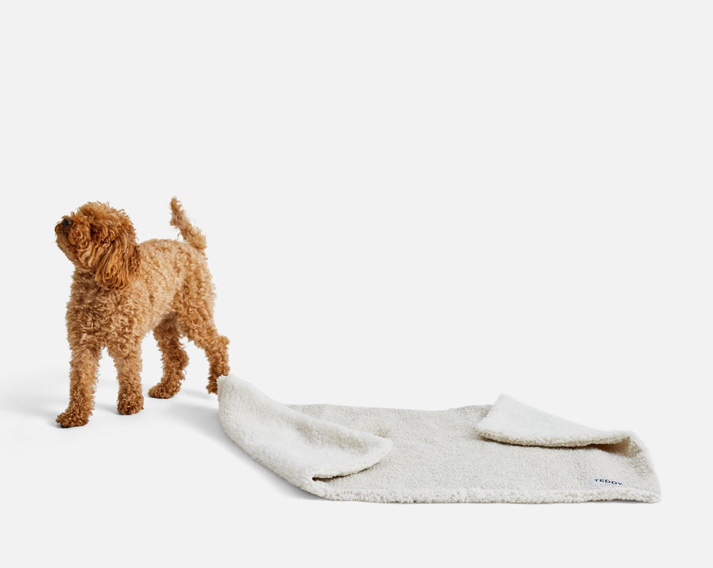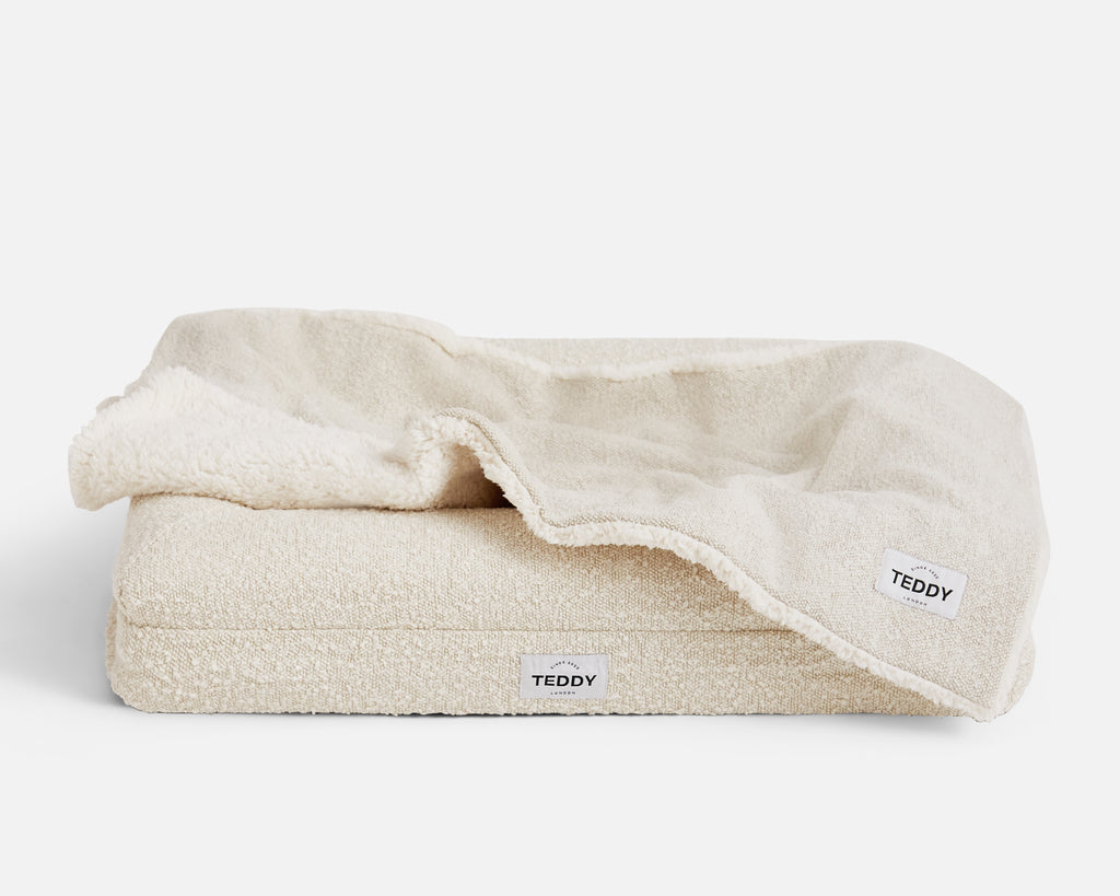 Introducing our NEW super luxurious double sided pet blankets made from the softest of fabrics. These reversible dual sided blankets are made from our classic boucle weave on one side and a super soft sherpa teddy fleece fabric on the other. Our machine washable plush dog throws can be used on their own or in your dog’s bed ready to be snuggled up too during nap time.