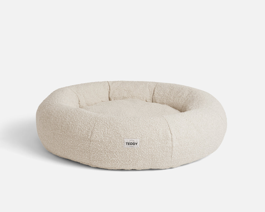 Introducing our NEW CLOUD beds, a soft round bed lined in our luxurious boucle weave that is perfect for dogs who like to curl up when they sleep. These calming anti-anxiety beds are perfect for dogs who like to snuggle up and our cushioned walls ensure that they can rest their heads whilst feeling supported. The shredded memory foam allows your dogs muscles, bones and joints to rest in their natural position and is great for dogs of all ages.